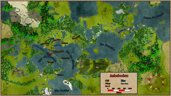 La Société d’exploration de Lamabein est heureuse de dévoiler une mappemonde qui illustre la majeure partie du monde connu. Cette version préliminaire est soumise à l’approbation des membres afin de donner l’opportunité au découvreur des diverses contrées, villages, monts et rivières de les nommer.